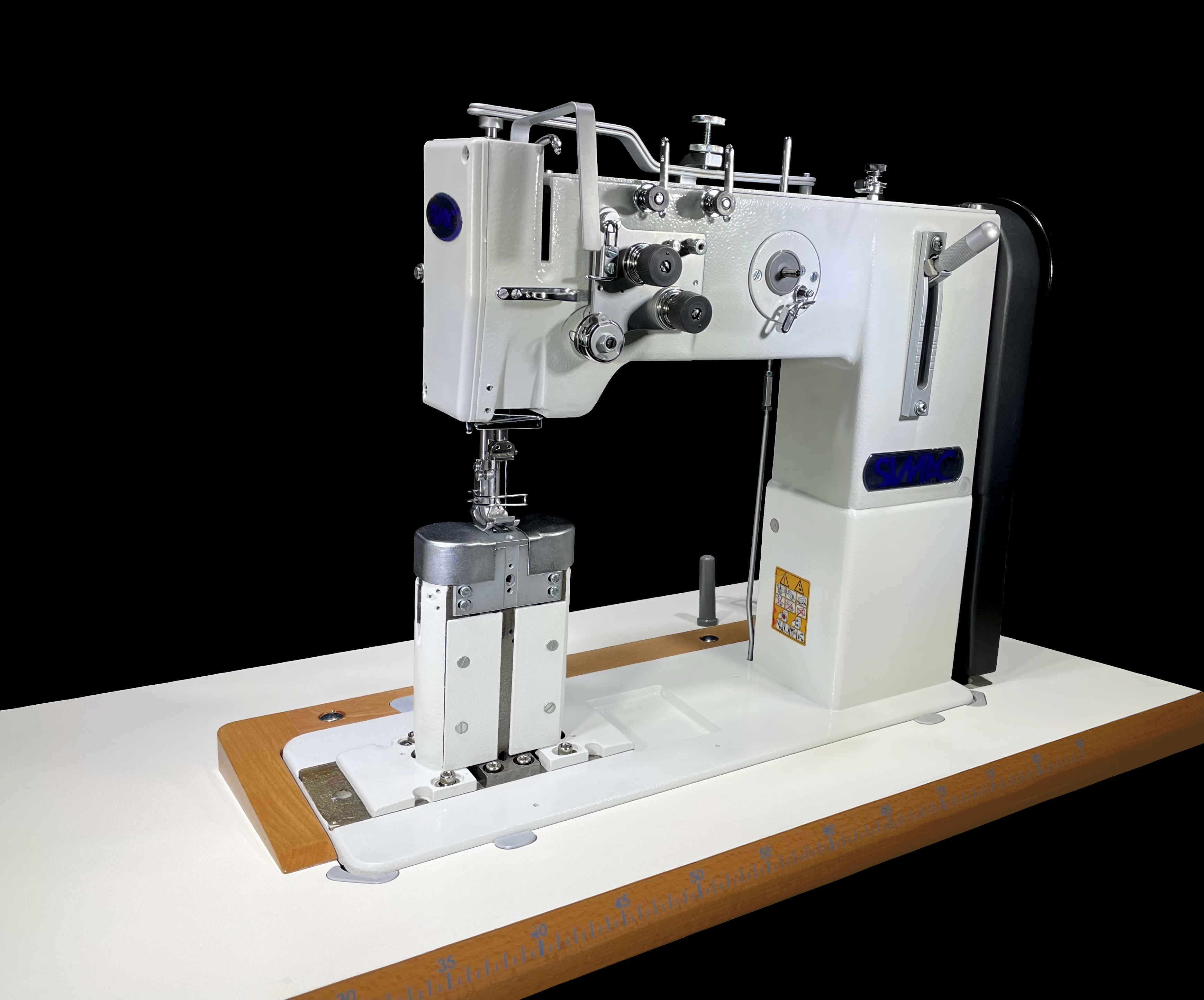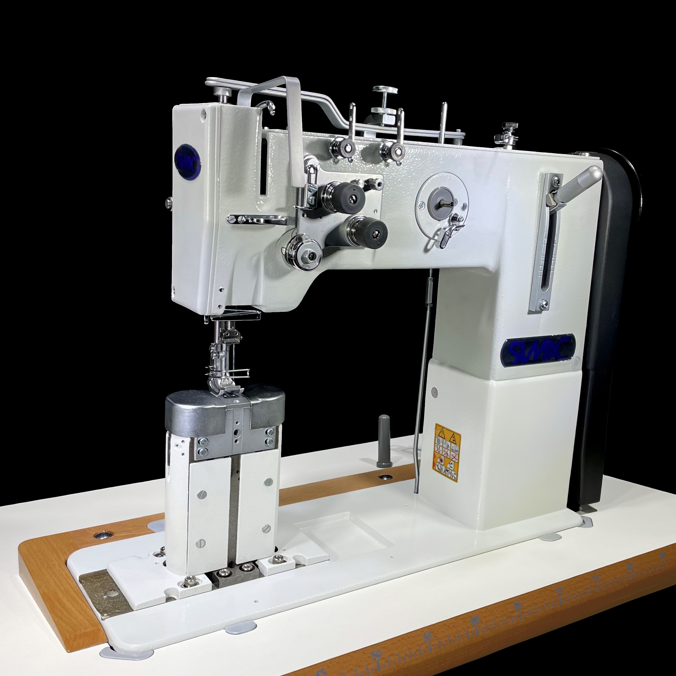 La Simac 268 – 273 è una macchina a colonna a 2 aghi a punto annodato, triplice trasporto, dotata di crochet grandi adatta per materiali medio/pesanti quali tappezzeria per auto, borse e articoli simili che richiedono uno standard elevato di qualità.
